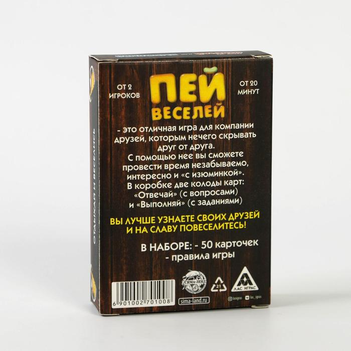 Купить игра для компании "пей веселей" 50 карт от 180 руб. с доставкой до пункта выдачи в Гусь-Хрустальном. Интернет магазин ДекаМаркет. Оплата при получении.